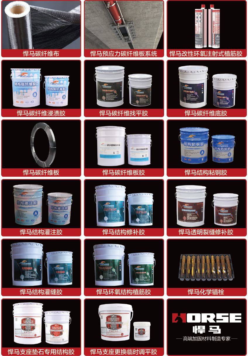 常见的加固材料有:碳纤维布、碳纤维板、植筋胶、粘钢胶、灌注胶、灌缝胶等。在确定加固方案后,在材料的采购环节需要格外重视,只有采购有品质保障的加固材料,才能取得好的加固效果,从源头把握工程质量。